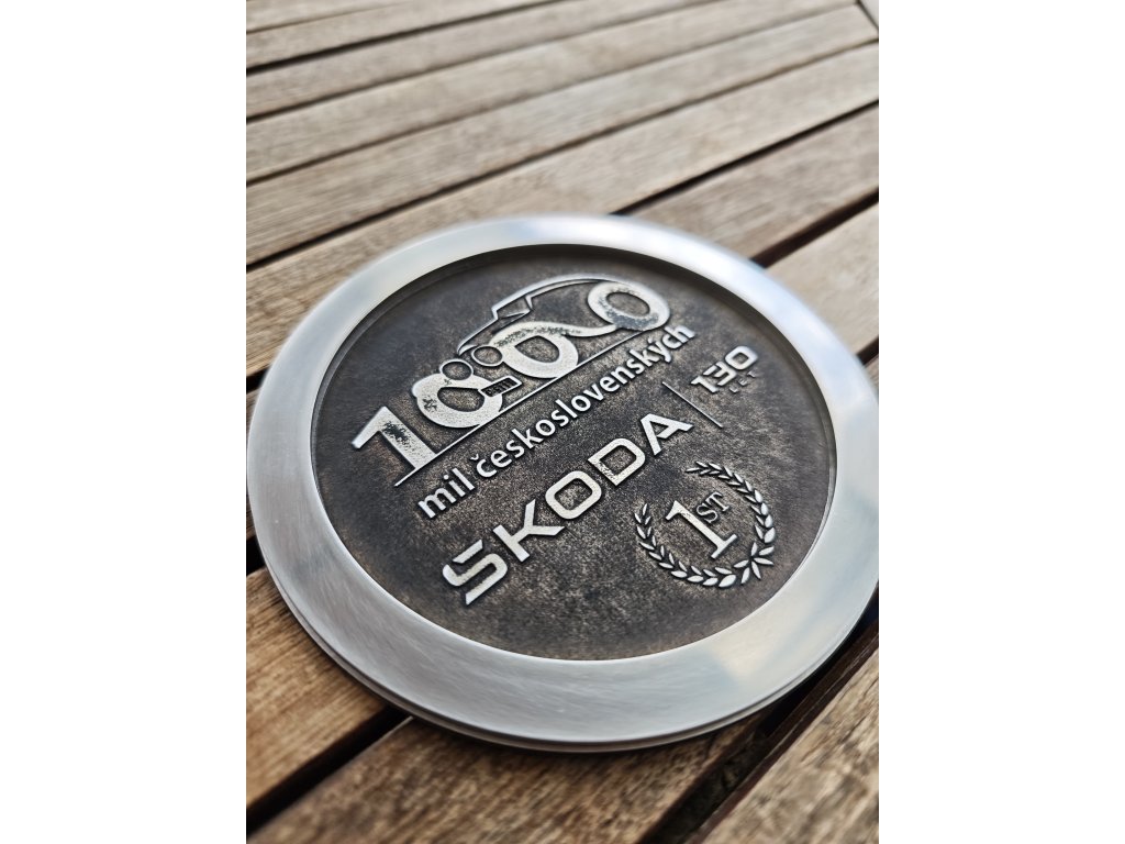 Hliník působí profesionálně, má decentní kovový lesk a snadno se udržuje. Je dostatečně pevný, ale zároveň lehký – vhodný jak do vitríny, tak pro zavěšení, zaslání poštou nebo přidání do dárkového balení.