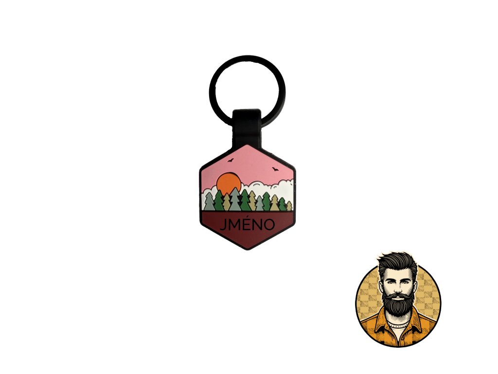 Silikonová psí známka ve tvaru hexagonu s motivem.