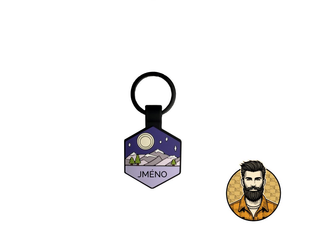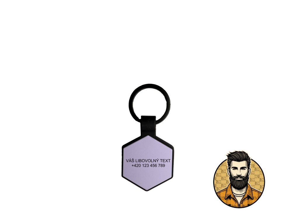 Silikonová psí známka ve tvaru hexagonu s motivem.
