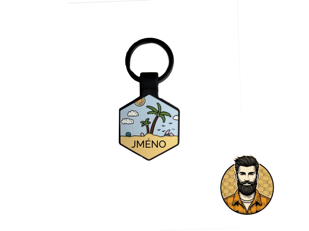 Silikonová psí známka ve tvaru hexagonu s motivem.