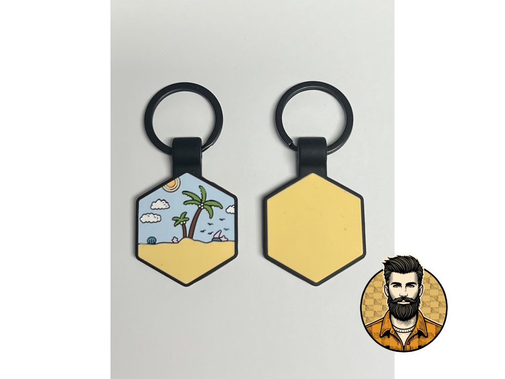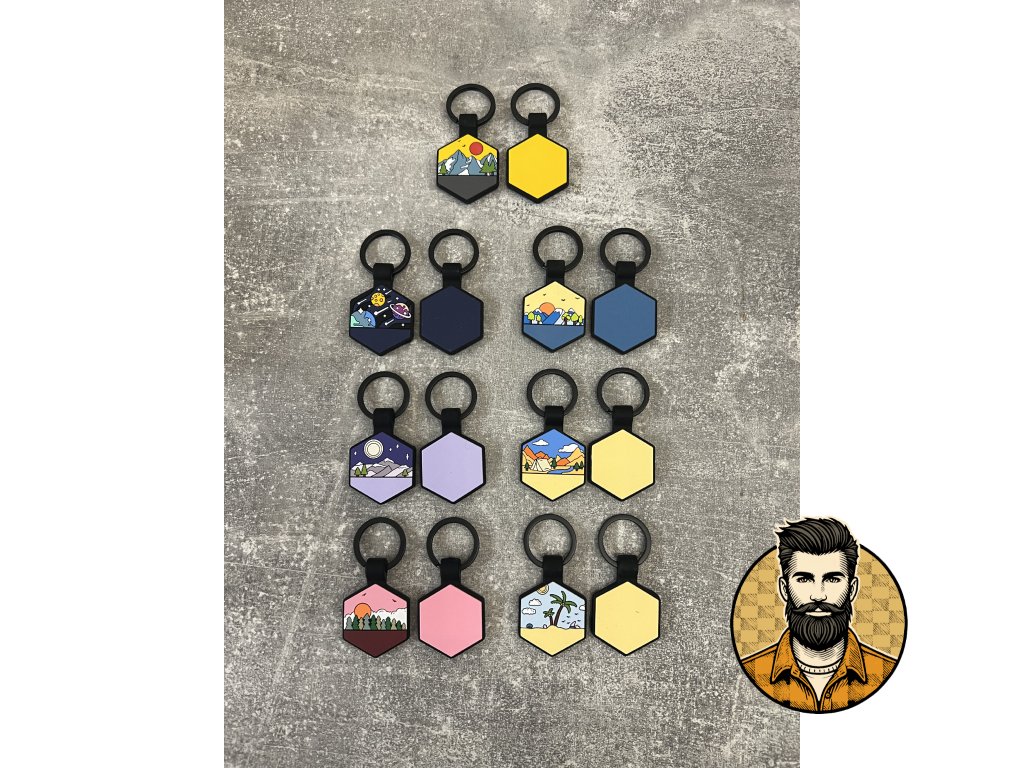 Silikonová psí známka ve tvaru hexagonu s motivem a vlastním gravírováním.