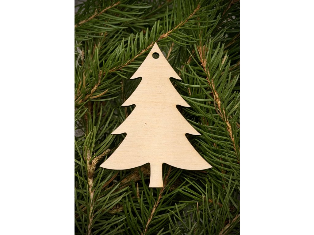 Elegantní přírodní ozdoba ve tvaru vánočního stromečku, vyřezaná z kvalitní překližky. Skvěle se hodí na vánoční stromeček, věnec, dárkové balení nebo jako dekorace do interiéru. Díky malému otvoru lze ozdobu snadno zavěsit na provázek či stužku.