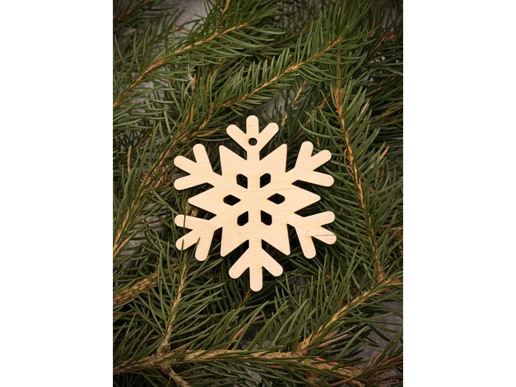 Elegantní přírodní ozdoba ve tvaru sněhové vločky, vyřezaná z kvalitní překližky. Skvěle se hodí na vánoční stromeček, věnec, dárkové balení nebo jako dekorace do interiéru. Díky malému otvoru lze ozdobu snadno zavěsit na provázek či stužku.