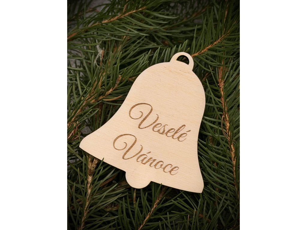 Elegantní přírodní ozdoba ve tvaru vánočního zvonečku, vyřezaná z kvalitní překližky. Skvěle se hodí na vánoční stromeček, věnec, dárkové balení nebo jako dekorace do interiéru. Díky malému otvoru lze ozdobu snadno zavěsit na provázek či stužku.